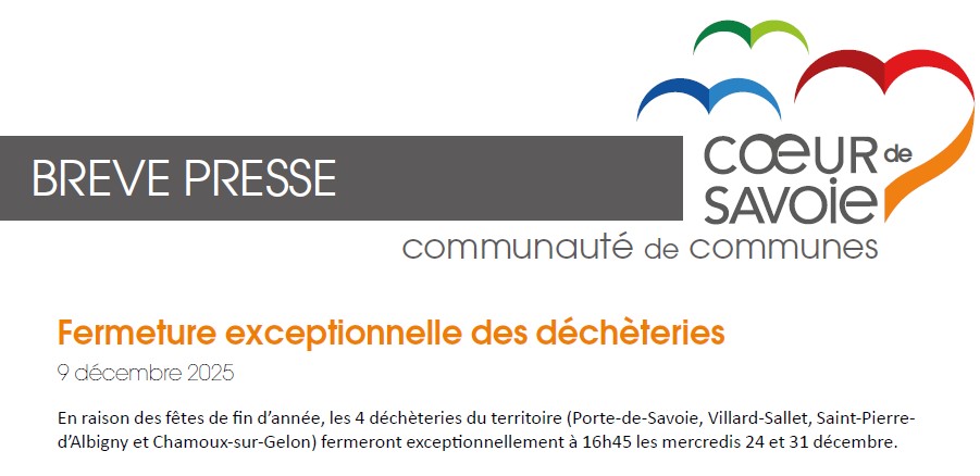 3. Fermeture exceptionnelle des déchèteries les 24 et 31/12/2025