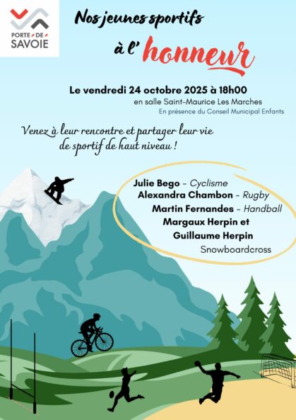 La commune de Porte-de-Savoie organise une soirée « Nos jeunes sportifs à l’honneur » le vendredi 24 octobre 2025 à 18h00 en salle Saint-Maurice – Les Marches.