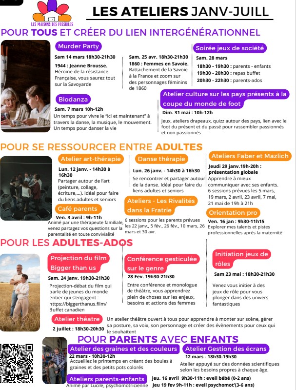 L’association Maisons des Possibles organise un atelier d’art-thérapie le lundi 12 janvier 2026 de 14h30 à 16h30.