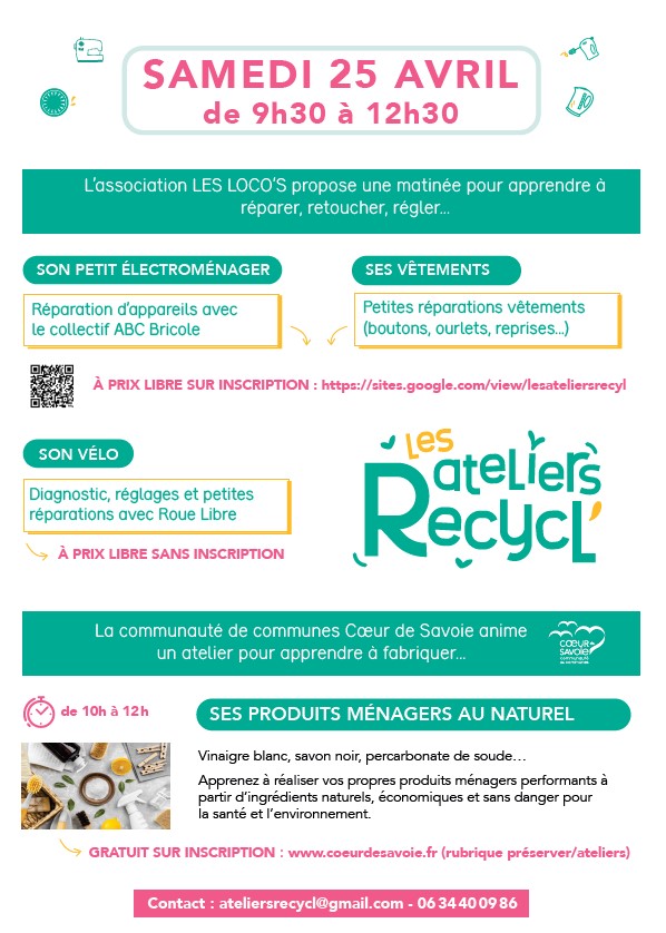L’association LES LOCO’S propose une matinée le samedi 25 avril de 9h30 à 12h30 à l’espace Gojon, 548 rue de Belledonne à Francin pour apprendre à réparer, retoucher, régler :
