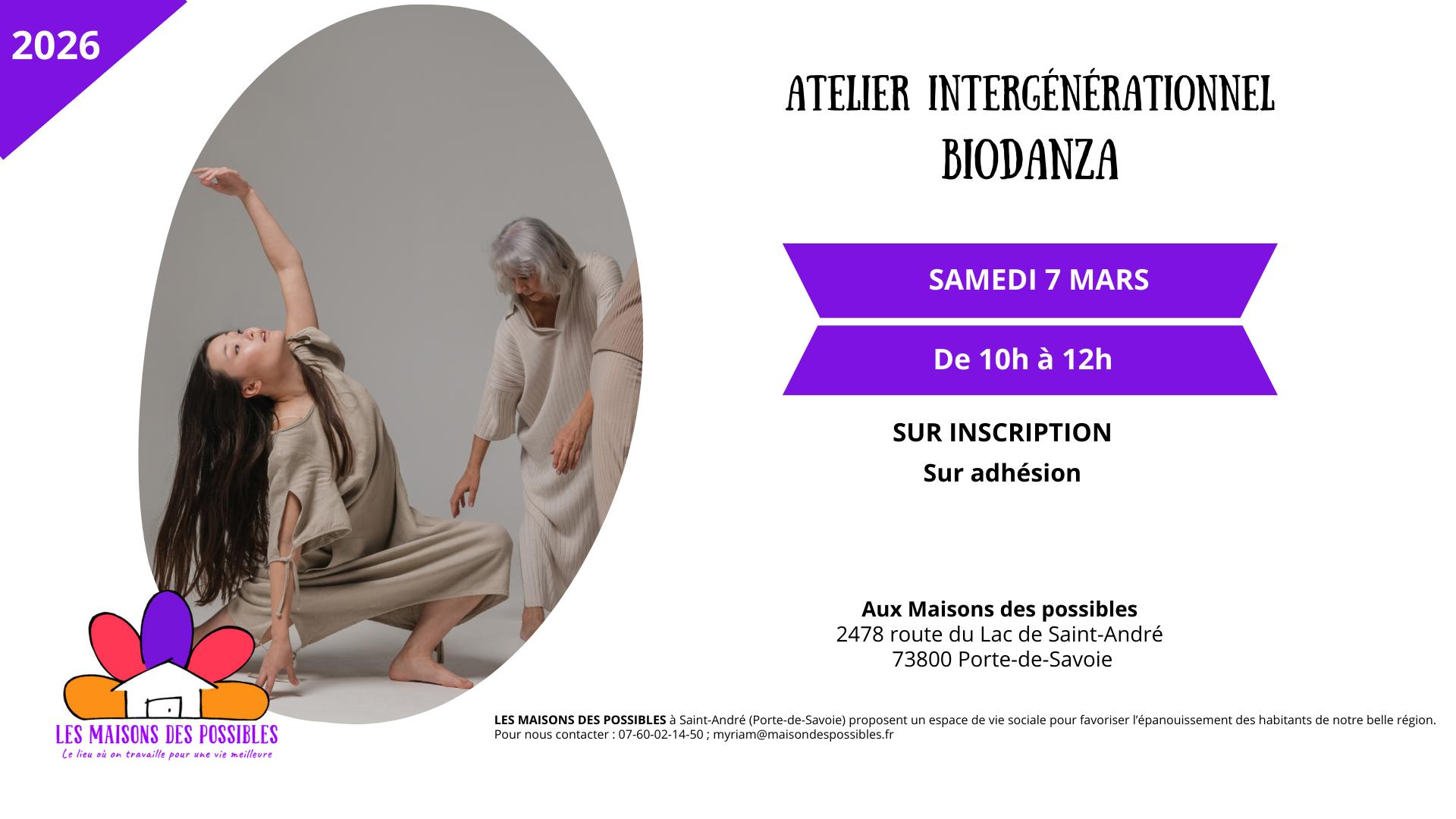 L’association Maisons des Possibles organise un atelier intergénérationnel Biodanza le samedi 7 mars de 10h à 12h, à Saint-André.