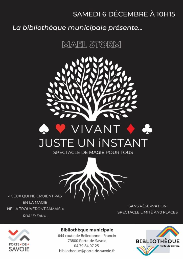 La bibliothèque municipale présente un spectacle de magie « Vivant juste un instant » le samedi 6 décembre à 10h15.