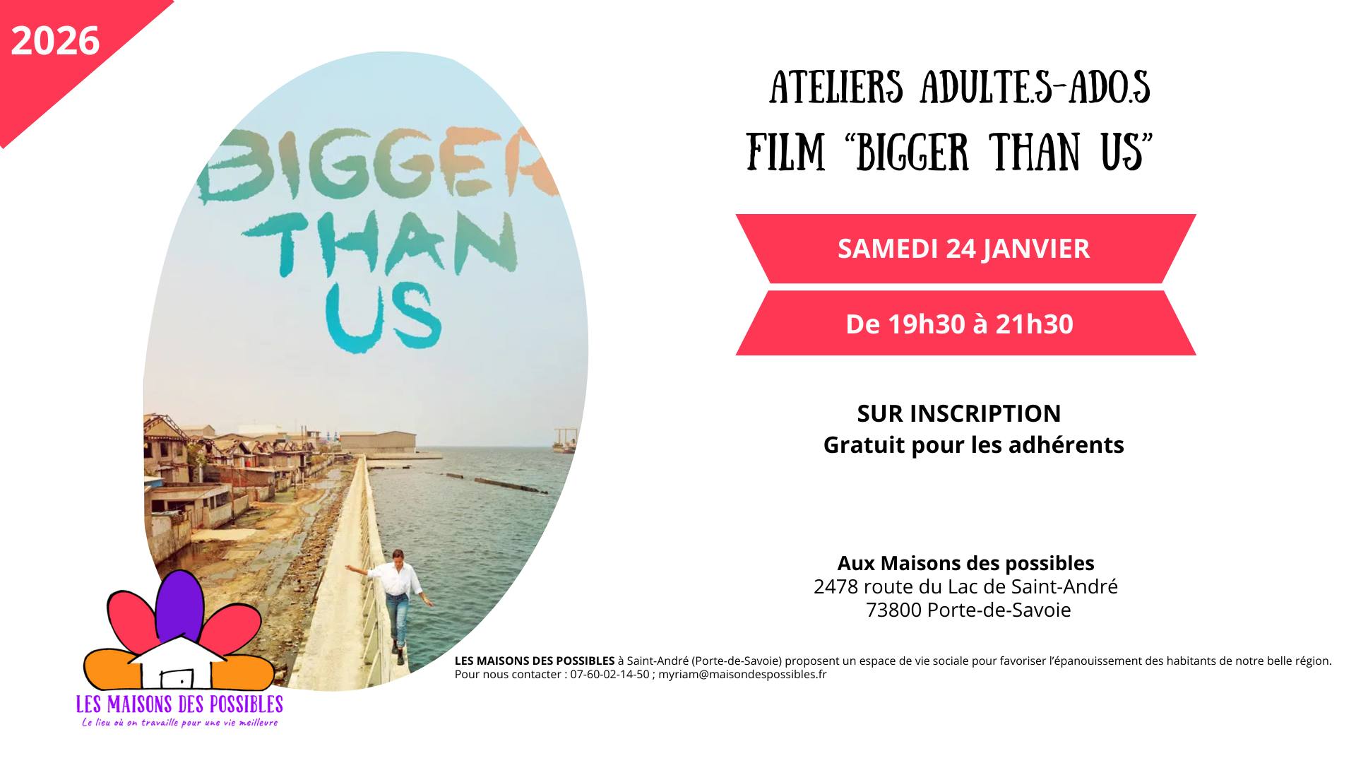 L’association Maisons des Possibles organise la projection du film « Bigger than us » le samedi 24 janvier à 19h30.