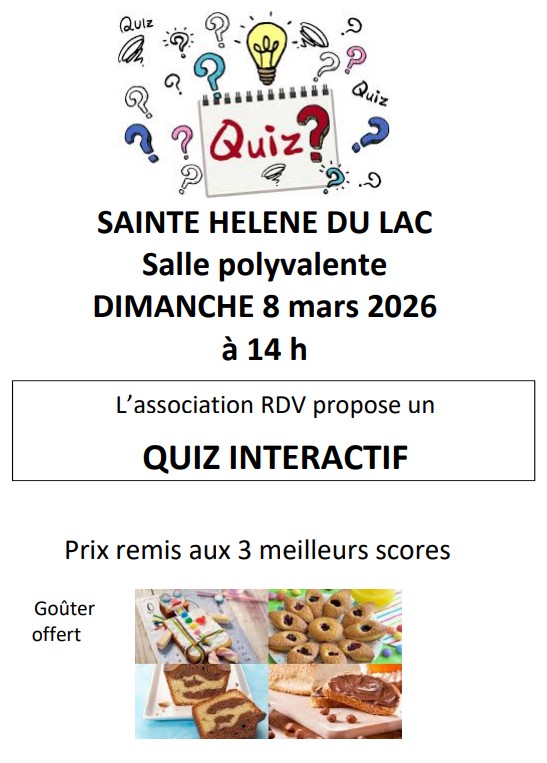 L’association Randonnées Divertissements Voyages de Sainte Hélène du Lac, organise le dimanche 8 mars après midi un quiz interactif.