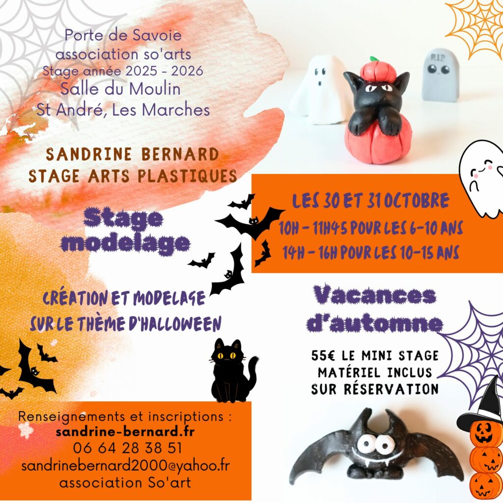 L’association So’Arts propose un stage de modelage argile et de création de figurine d’Halloween les 30 et 31 octobre 2025 :