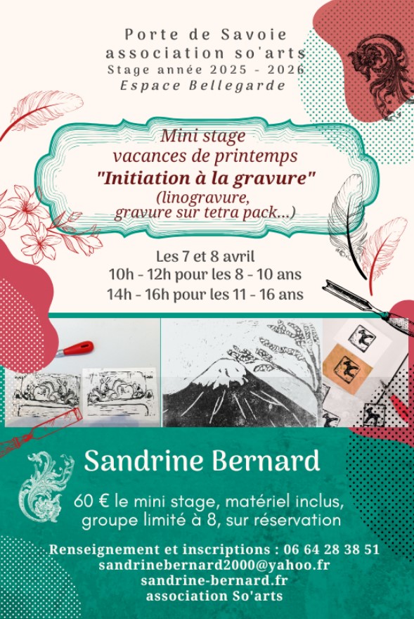 L’association So’Arts propose un stage de linogravure les 7 et 8 avril, à l’Espace Bellegarde – Les Marches.