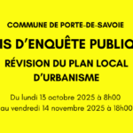 Par arrêté n°2025_349 en date du 26 août 2025, le Maire de PORTE-DE-SAVOIE a ordonné l'ouverture d'une enquête publique sur [...]