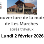 Après une période de travaux, la mairie de Les Marches réouvre le lundi 2 février 2026 sur les horaires habituels.